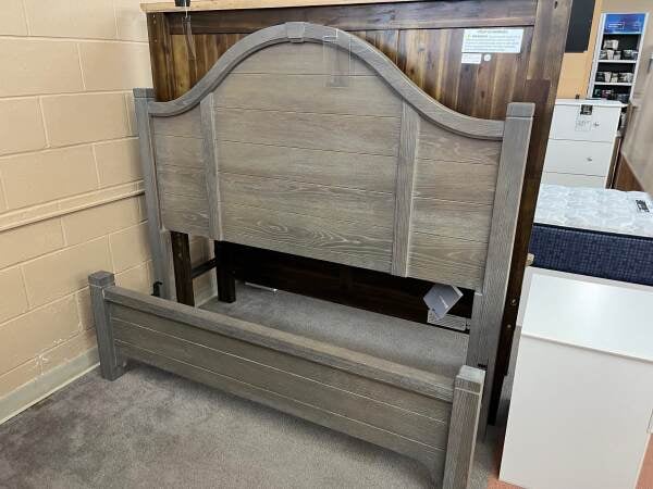 Two-Toned Driftwood and Sable Finish. Solid Acacia and Select Hardwoods. Rustic Transitional Style. Hardware is finished in a weathered brass. Standard and Storage Rail options. 67.375″W x 87.123″D x 62″H