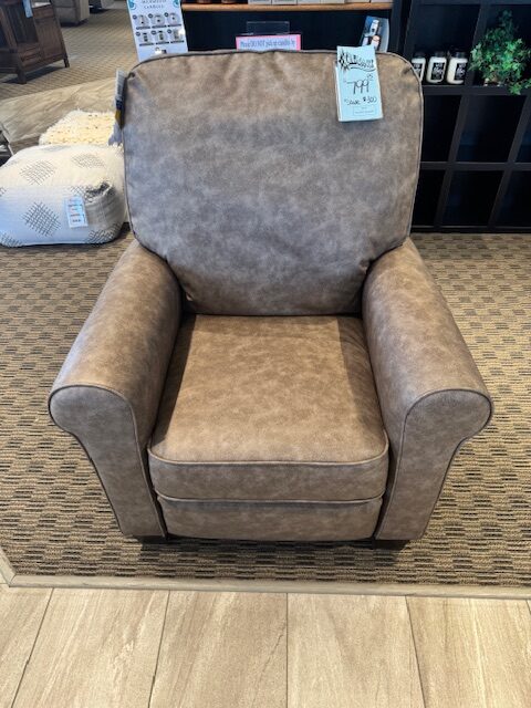 - Transitionaly styled high leg recliner