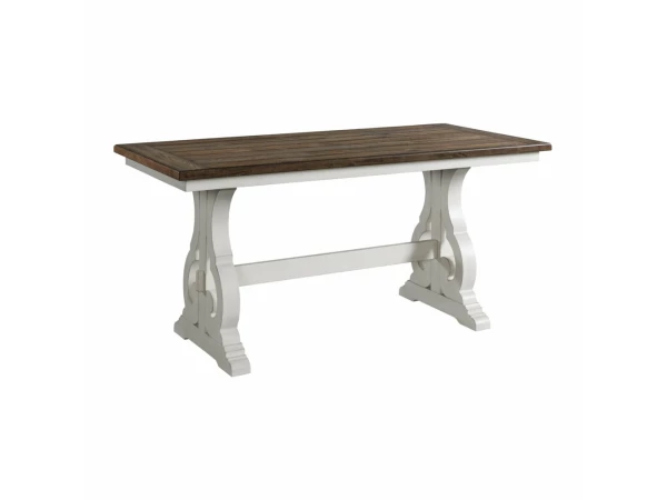 The Drake Dining Collection comes in a beautiful Two-Toned Rustic White and French Oak Finish. This unique collection also features an antique harp style base on tables, constructed from rustic knotty Oak Veneer and Select Hardwood. FEATURES • Two-Toned Rustic White and French Oak Finish • Rustic Knotty Oak Veneer and Select Hardwood • Comfortably cushioned seats • Side stretchers added for strength • Footrest added for comfort PRODUCT DIMENSIONS 20.5″W x 22″D x 42″H