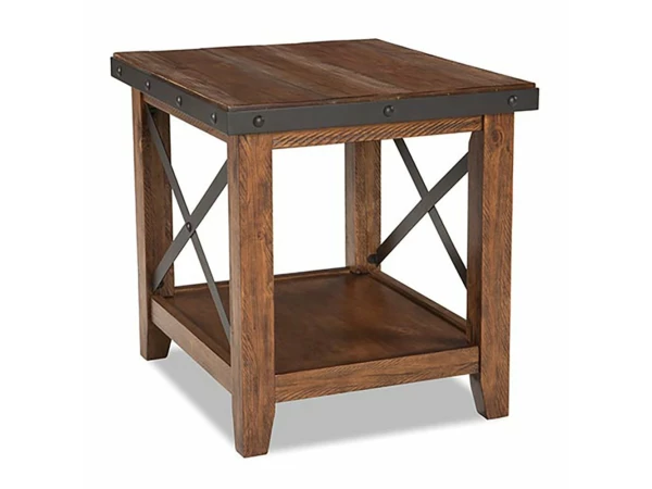 The Taos Living Collection is constructed from spruce veneers and select hardwoods and has a unique canyon brown finish. One TV stand and four accent tables are available to meet your exact living room needs. Wrought iron accents and caster wheels combined with a gentle brushed finish gives this set a warm yet industrial feel. Perfect for rooms that are looking for that little something extra! FEATURES • Canyon Brown Finish • Spruce Veneer and Select Hardwoods • Occasional tables have metal “X” stretchers • Studded metal detailing • Open bottom shelf for storage PRODUCT DIMENSIONS 16″W x 26″D x 24″H